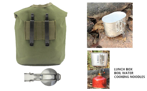 - INTEGRATED ALUMINUM CANTEEN CUP WITH HANDLES: can cook directly on the fire